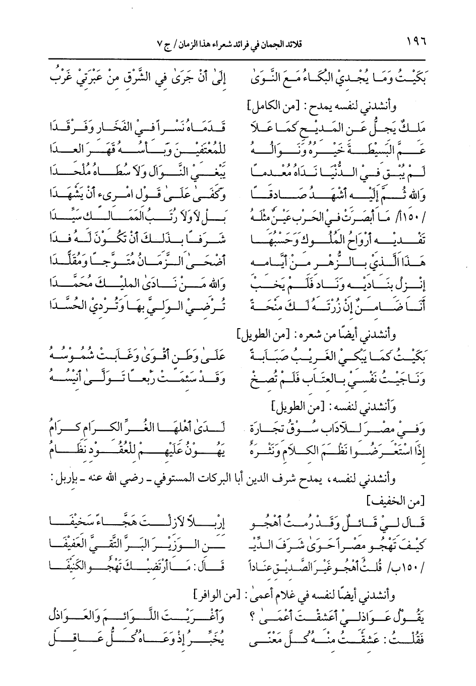 كتاب قلائد الجمان في فرائد شعراء هذا الزمان (اسم الجزء: 6)
