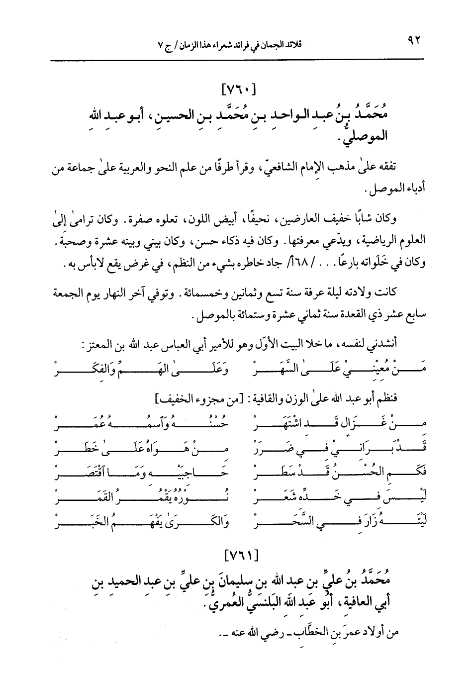 كتاب قلائد الجمان في فرائد شعراء هذا الزمان (اسم الجزء: 6)