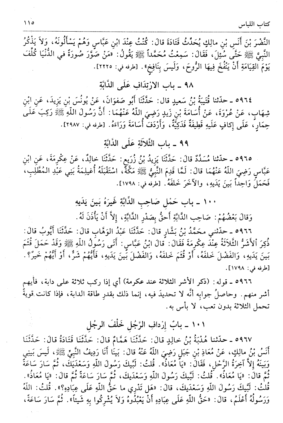 99 - باب الثَّلاَثَةِ عَلَى الدَّابَّةِ