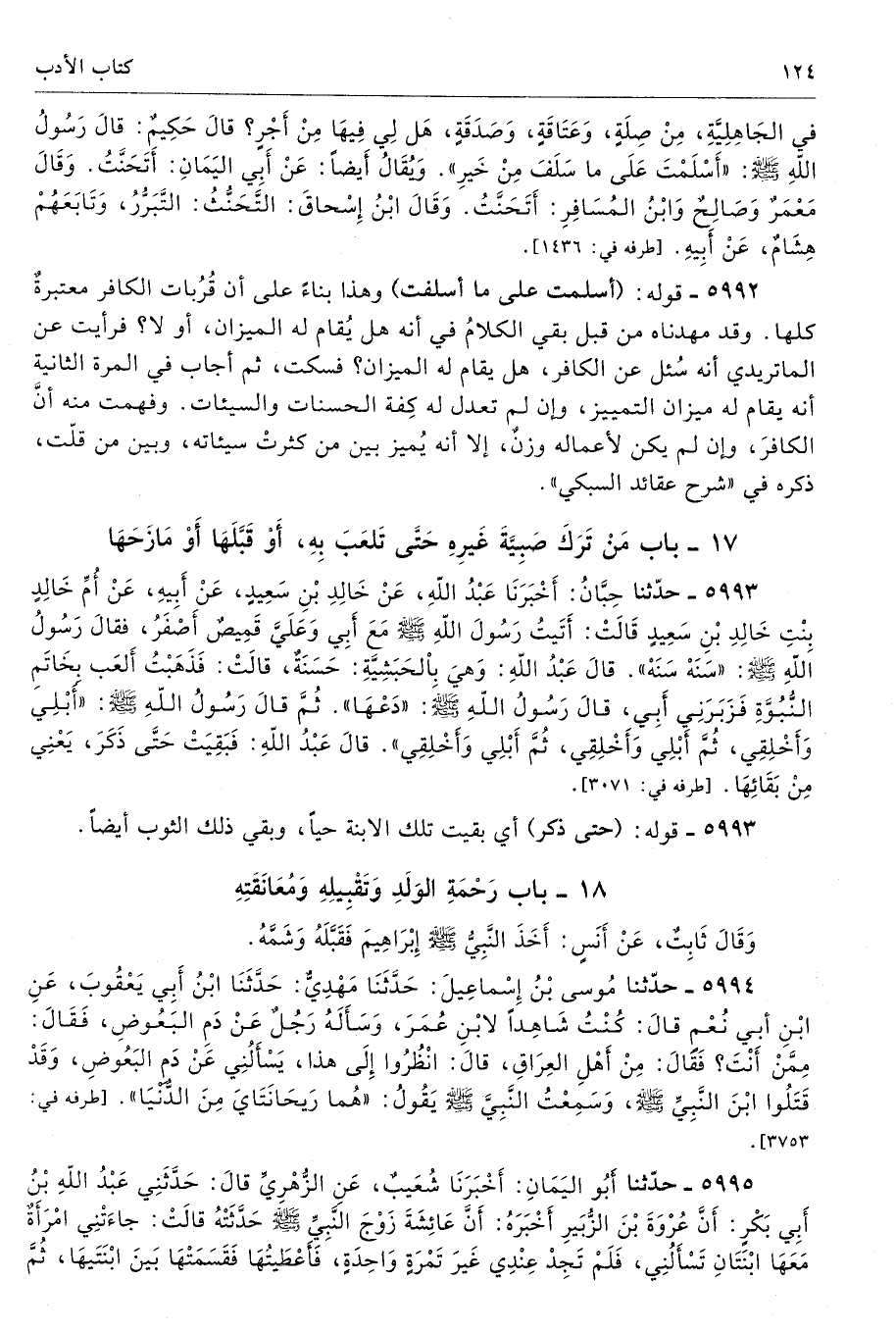18 - باب رَحْمَةِ الْوَلَدِ وَتَقْبِيلِهِ وَمُعَانَقَتِهِ