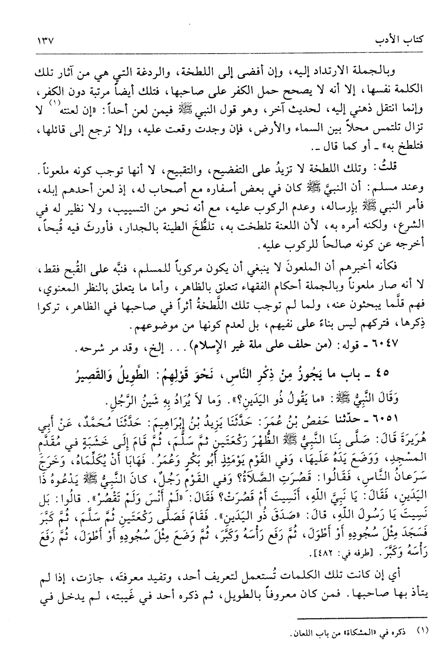 45 - باب مَا يَجُوزُ مِنْ ذِكْرِ النَّاسِ، نَحْوَ قَوْلِهِمُ: الطَّوِيلُ وَالْقَصِيرُ