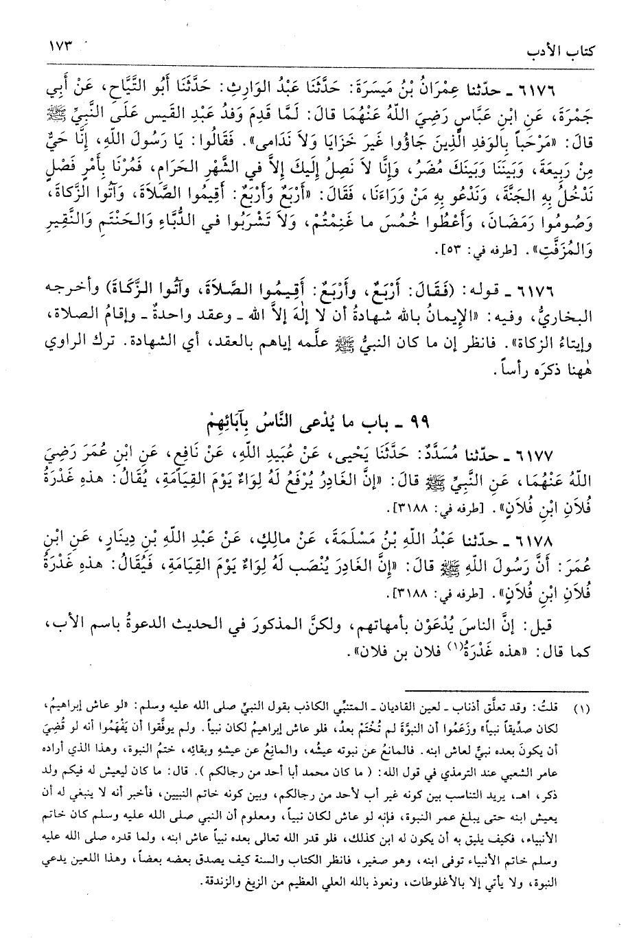 99 - باب مَا يُدْعَى النَّاسُ بِآبَائِهِمْ