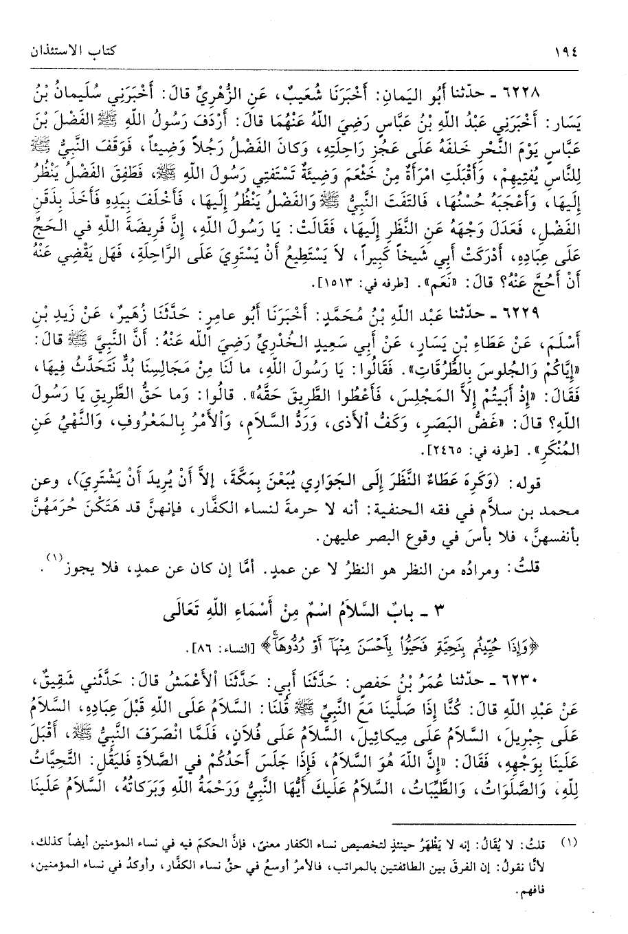 3 - باب السَّلاَمُ اسْمٌ مِنْ أَسْمَاءِ اللَّهِ تَعَالَى