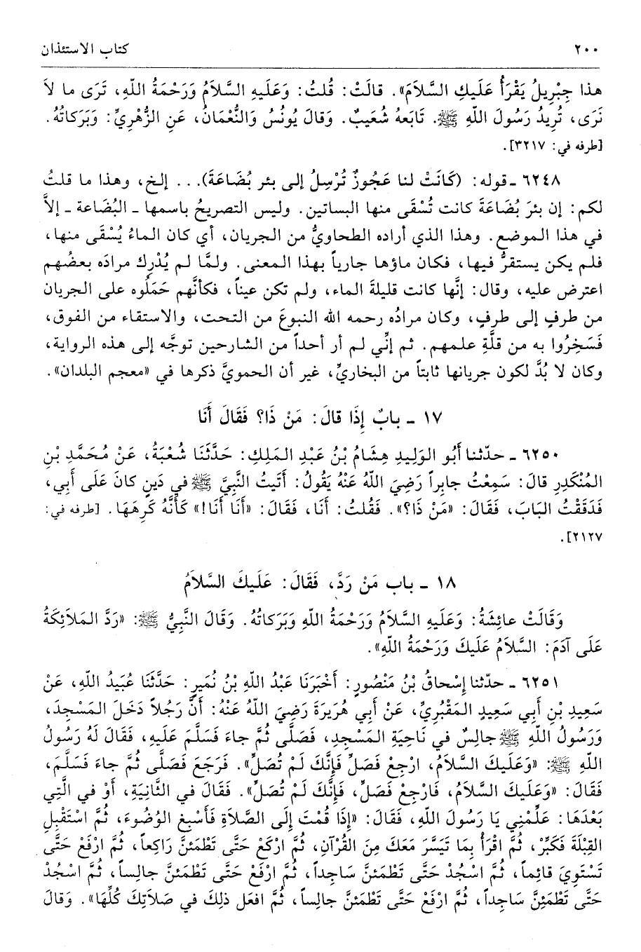 هَذَا جِبْرِيلُ يَقْرَأُ عَلَيْكِ السَّلاَمَ». قَالَتْ قُلْتُ وَعَلَيْهِ السَّلاَمُ وَرَحْمَةُ اللَّهِ، تَرَى مَا لاَ نَرَى. تُرِيدُ رَسُولَ اللَّهِ - صلى الله عليه وسلم -. تَابَعَهُ شُعَيْبٌ. وَقَالَ يُونُسُ وَالنُّعْمَانُ عَنِ الزُّهْرِىِّ وَبَرَكَاتُهُ. أطرافه 3217، 3768، 6201 - تحفة 17766