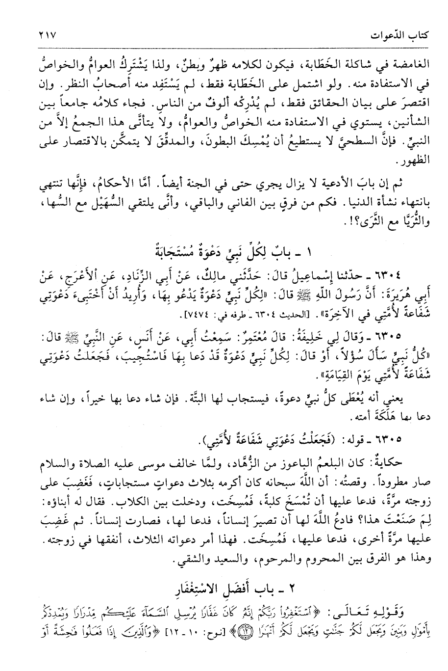 1 - باب وَلِكُلِّ نَبِىٍّ دَعْوَةٌ مُسْتَجَابَةٌ