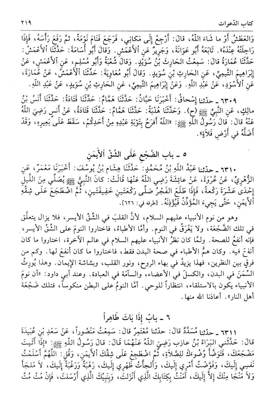5 - باب الضَّجْعِ عَلَى الشِّقِّ الأَيْمَنِ