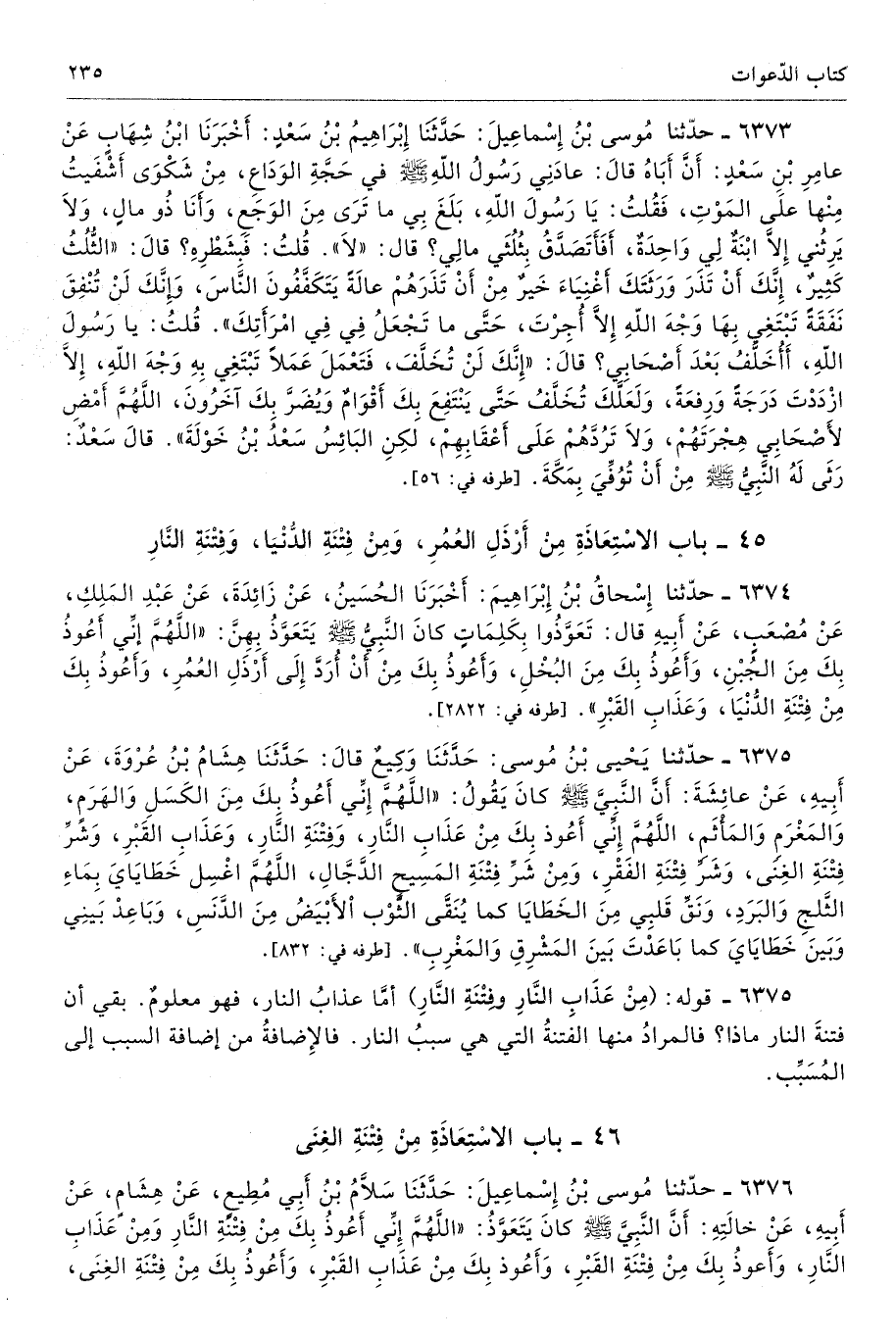 45 - باب الاِسْتِعَاذَةِ مِنْ أَرْذَلِ الْعُمُرِ، وَمِنْ فِتْنَةِ الدُّنْيَا، وَفِتْنَةِ النَّارِ