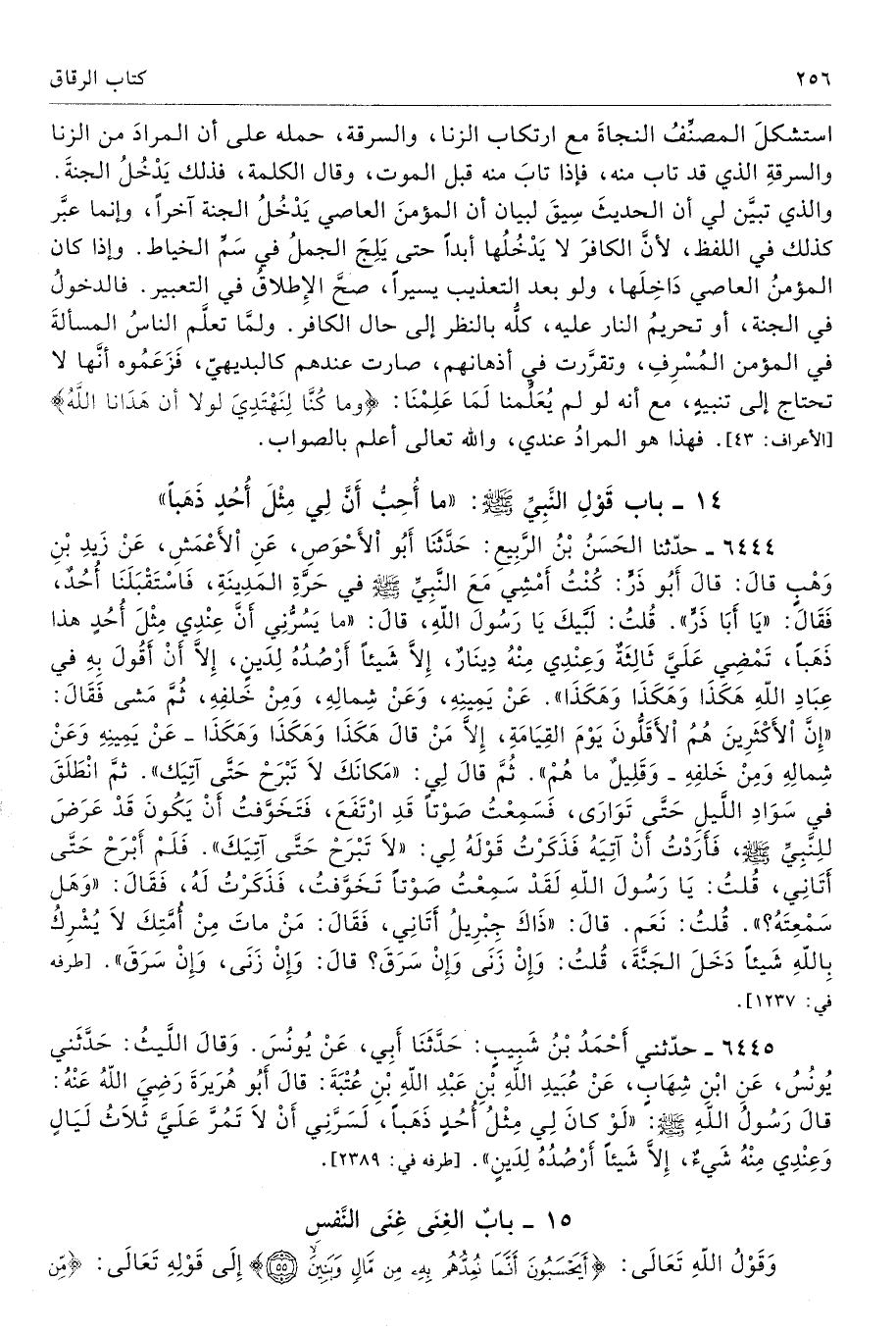 استشكلَ المصنِّفُ النجاةَ مع ارتكاب الزنا، والسرقة، حمله على أن المرادَ من الزنا والسرقةِ الذي قد تاب منه، فإذا تابَ منه قبل الموت، وقال الكلمة، فذلك يَدْخُلُ الجنةَ. والذي تبيَّن لي أن الحديثَ سِيقَ لبيان أن المؤمنَ العاصي يَدْخُلُ الجنة آخرًا، وإنما عبَّر كذلك في اللفظ، لأنَّ الكافرَ لا يَدْخُلُها أبدًا حتى يَلِجَ الجملُ في سَمِّ الخياط. وإذا كان المؤمنُ العاصي دَاخِلَها، ولو بعدالتعذيب يسيرًا، صحَّ الإِطلاقُ في التعبير. فالدخولُ في الجنة، أو تحريمُ النار عليه، كلُّه بالنظر إلى حال الكافر. ولمَّا تعلَّم الناسُ المسألةَ في المؤمن المُسْرِفِ، وتقرَّرت في أذهانهم، صارت عندهم كالبديهيّ، فَزَعَمُوا أنَّها لا تحتاج إلى تنبيهٍ، مع أنه لو لم يُعَلِّمنا لَمَا عَلِمْنَا: {وَمَا كُنَّا لِنَهْتَدِيَ لَوْلَا أَنْ هَدَانَا اللَّهُ} [الأعراف: 43]. فهذا هو المرادُ عندي، والله تعالى أعلم بالصواب.