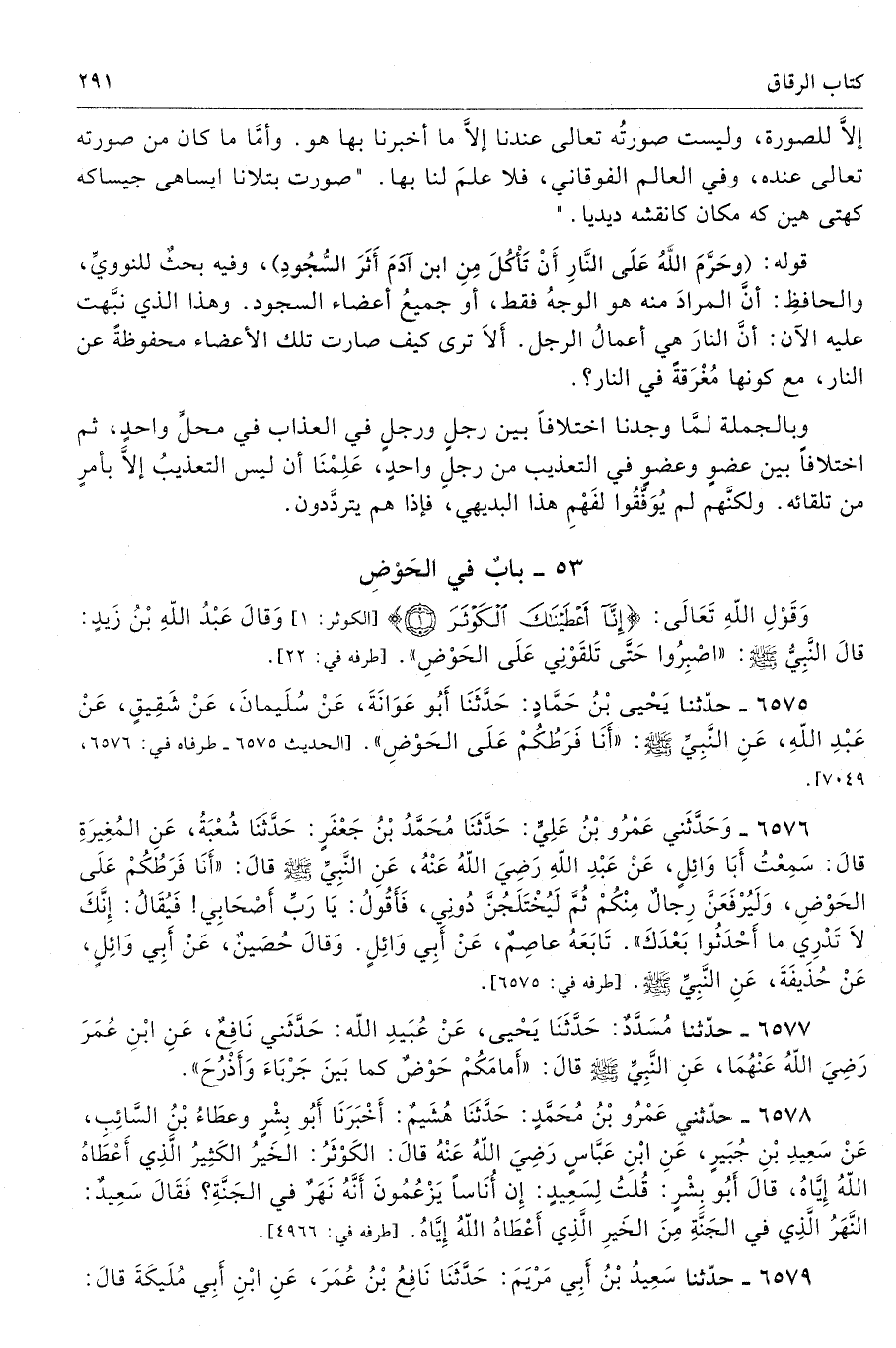 قوله: (وحَرَّمَ اللهُ عَلَى النَّارِ أَنْ تَأْكُلَ مِنِ ابن آدَمَ أَثَرَ السُّجُودِ)، وفيه بحثٌ للنوويِّ، والحافظِ: أنَّ المرادَ منه هو الوجهُ فقط، أو جميعُ أعضاء السجود. وهذا الذي نبَّهت عليه الآن: أنَّ النارَ هي أعمالُ الرجل. أَلاَ ترى كيف صارت تلك الأعضاء محفوظةً عن النار، مع كونها مُغْرَقةً في النار؟.