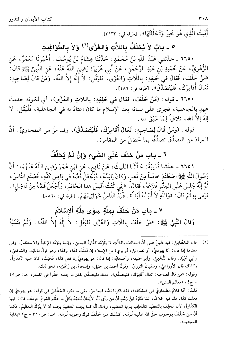 7 - باب مَنْ حَلَفَ بِمِلَّةٍ سِوَى مِلَّةِ الإِسْلاَمِ