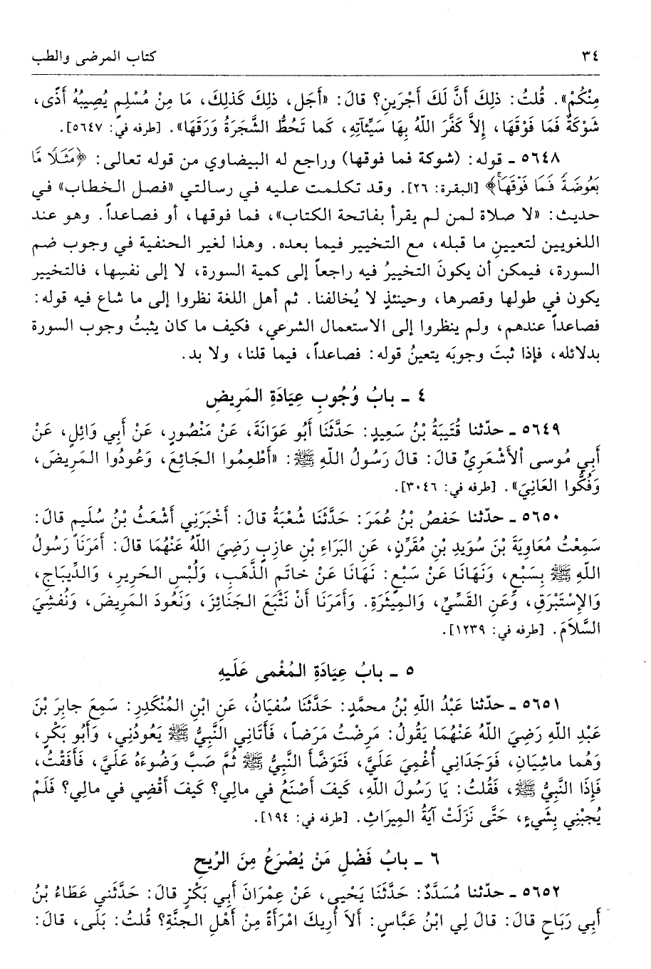 5648 - قوله: (شوكة فما فوقها) وراجع له البيضاوي من قوله تعالى: {مَثَلًا مَا بَعُوضَةً فَمَا فَوْقَهَا} [البقرة: 26]. وقد تكلمت عليه في رسالتي «فصل الخطاب» في حديث: «لا صلاة لمن لم يقرأ بفاتحة الكتاب»، فما فوقها، أو فصاعدًا. وهو عند اللغويين لتعيينِ ما قبله، مع التخيير فيما بعده. وهذا لغير الحنفية في وجوب ضم السورة، فيمكن أن يكونَ التخييرُ فيه راجعًا إلى كمية السورة، لا إلى نفسِها، فالتخيير يكون في طولها وقصرها، وحينئذٍ لا يُخالفنا. ثم أهل اللغة نظرًا إلى ما شاع فيه قوله: فصاعدًا عندهم، ولم ينظروا إلى الاستعمال الشرعي، فكيف ما كان يثبتُ وجوب السورة بدلائله، فإذا ثبتَ وجوبَه يتعينُ قوله: فصاعدًا، فيما قلنا، ولا بد.