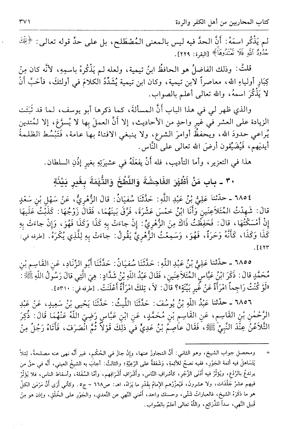 30 - باب مَنْ أَظْهَرَ الْفَاحِشَةَ وَاللَّطْخَ وَالتُّهَمَةَ بِغَيْرِ بَيِّنَةٍ