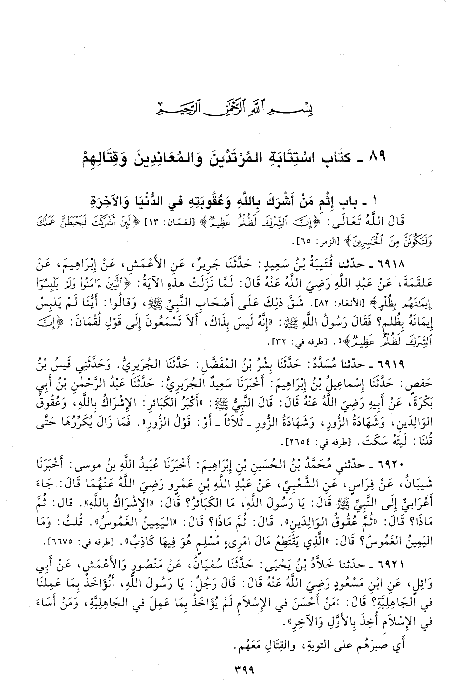 89 - كتاب اسْتِتَابَةِ المُرْتَدِّينَ وَالمُعَانِدِينَ وَقِتَالِهِم