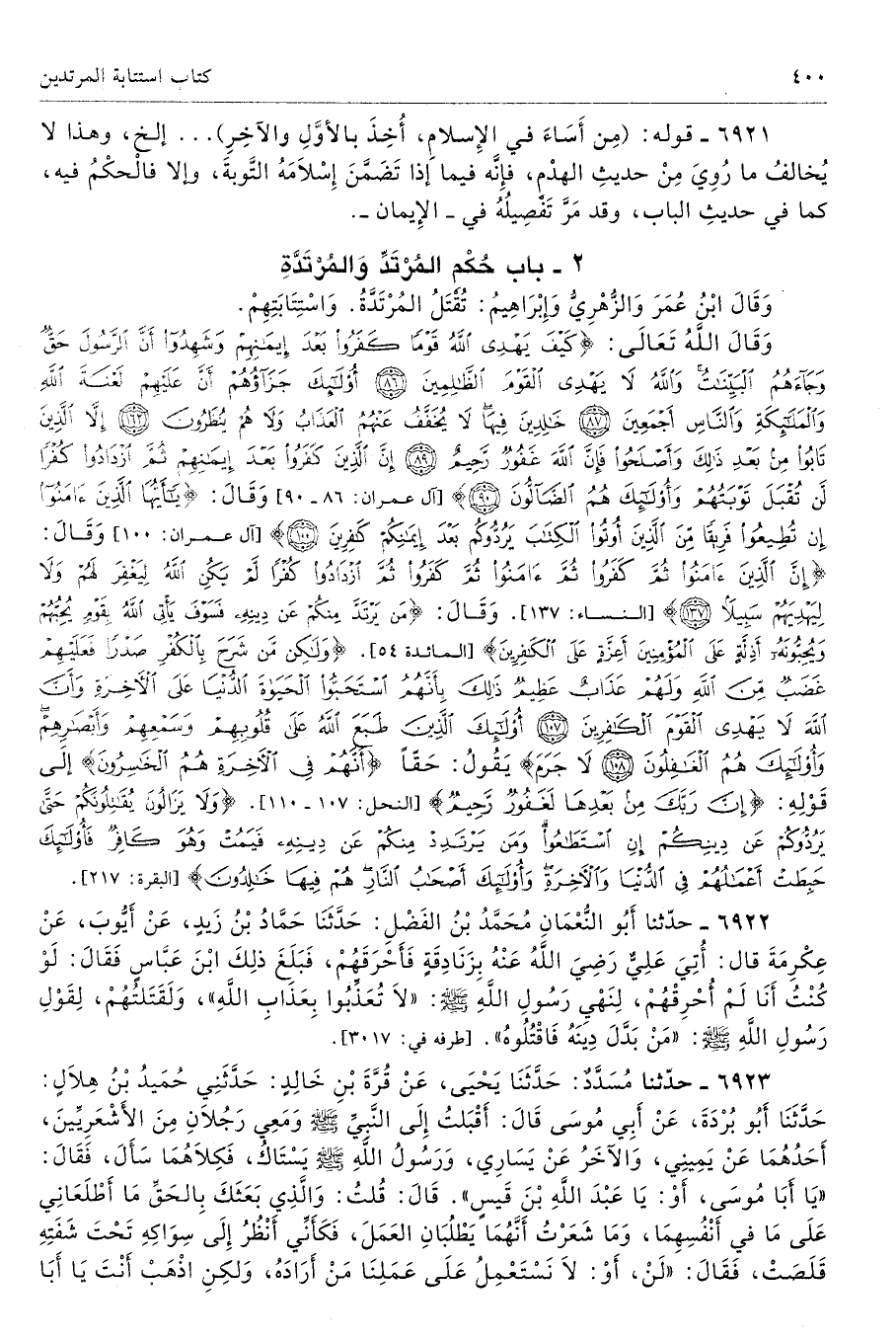 2 - باب حُكْمِ الْمُرْتَدِّ وَالْمُرْتَدَّةِ