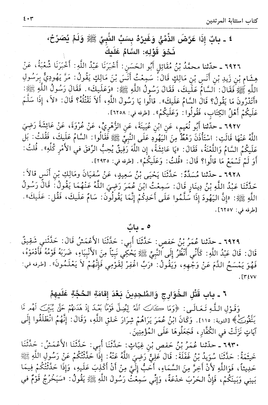 6 - باب قَتْلِ الْخَوَارِجِ وَالْمُلْحِدِينَ بَعْدَ إِقَامَةِ الْحُجَّةِ عَلَيْهِمْ