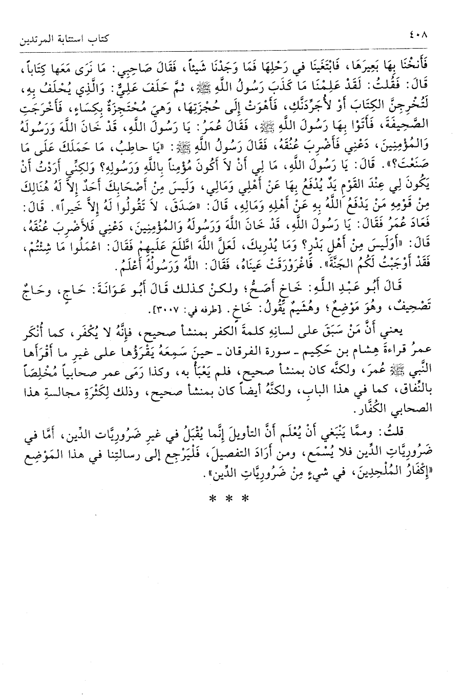 قلتُ: وممَّا يَنْبَغي أَنْ يُعْلَم أَنَّ التأويلَ إِنَّما يُقْبَلُ في غيرِ ضَرُورِيَّات الدِّين، أَمَّا في ضَرُورِيَّاتِ الدِّين فلا يُسْمَع، ومن أَرَادَ التفصيلَ، فَلْيَرْجِع إلى رسالتِنا في هذا المَوْضِع «إِكْفَارُ المُلْحِدِينَ، في شيءٍ مِنْ ضَرُورِيَّاتِ الدِّين».