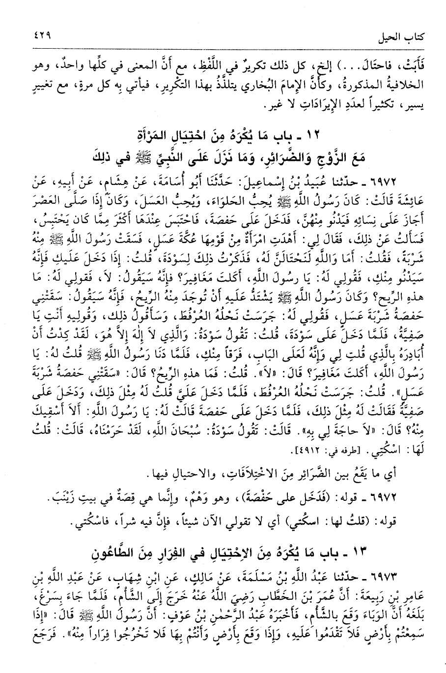 12 - باب مَا يُكْرَهُ مِنِ احْتِيَالِ الْمَرْأَةِ مَعَ الزَّوْجِ وَالضَّرَائِرِ، وَمَا نَزَلَ عَلَى النَّبِىِّ - صلى الله عليه وسلم - فِى ذَلِكَ