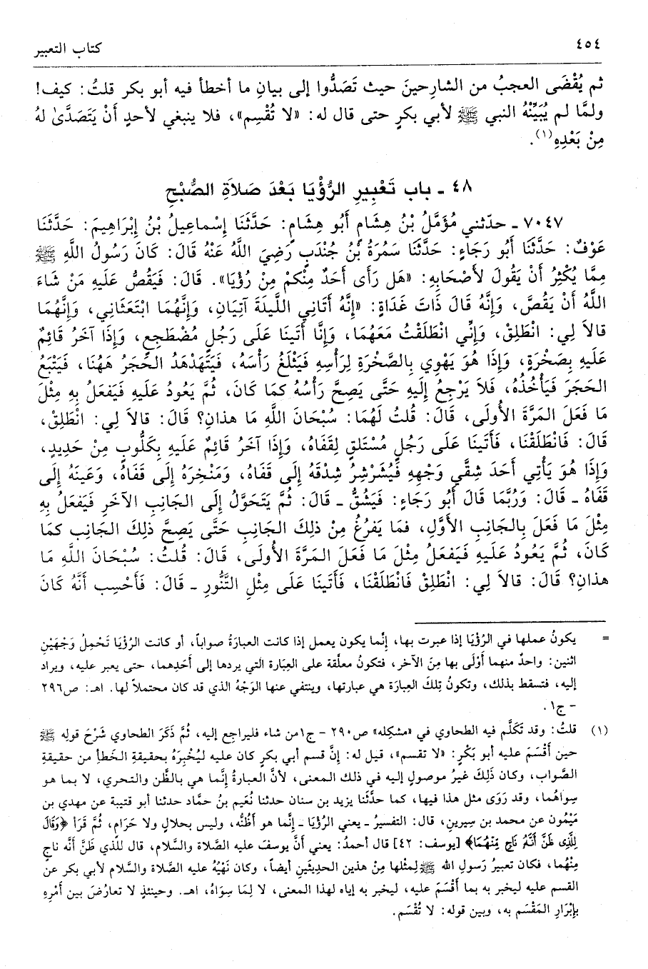48 - باب تَعْبِيرِ الرُّؤْيَا بَعْدَ صَلاَةِ الصُّبْحِ