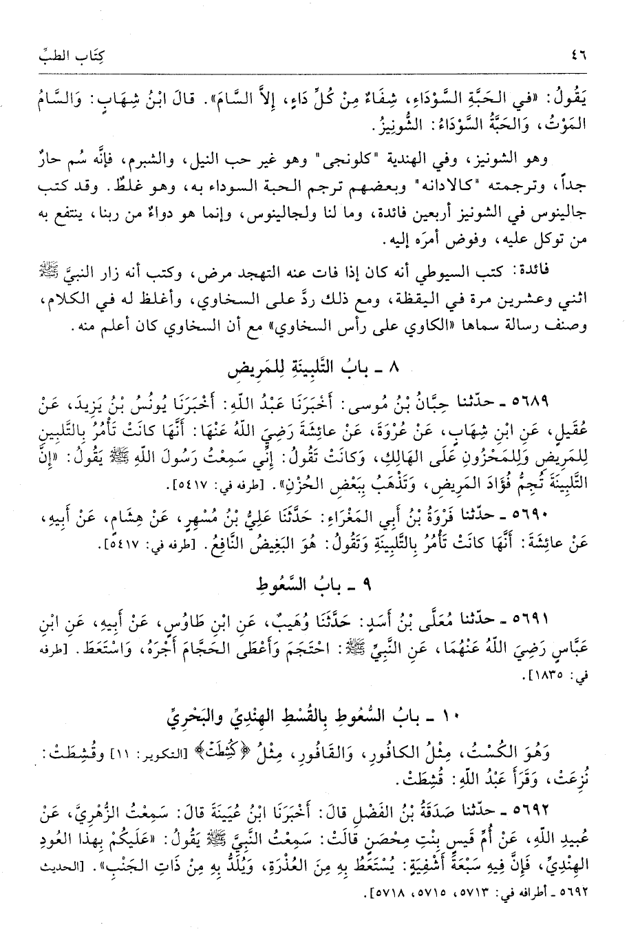 يَقُولُ «فِى الْحَبَّةِ السَّوْدَاءِ شِفَاءٌ مِنْ كُلِّ دَاءٍ إِلاَّ السَّامَ». قَالَ ابْنُ شِهَابٍ وَالسَّامُ الْمَوْتُ، وَالْحَبَّةُ السَّوْدَاءُ الشُّونِيزُ. تحفة 15219، 13210
