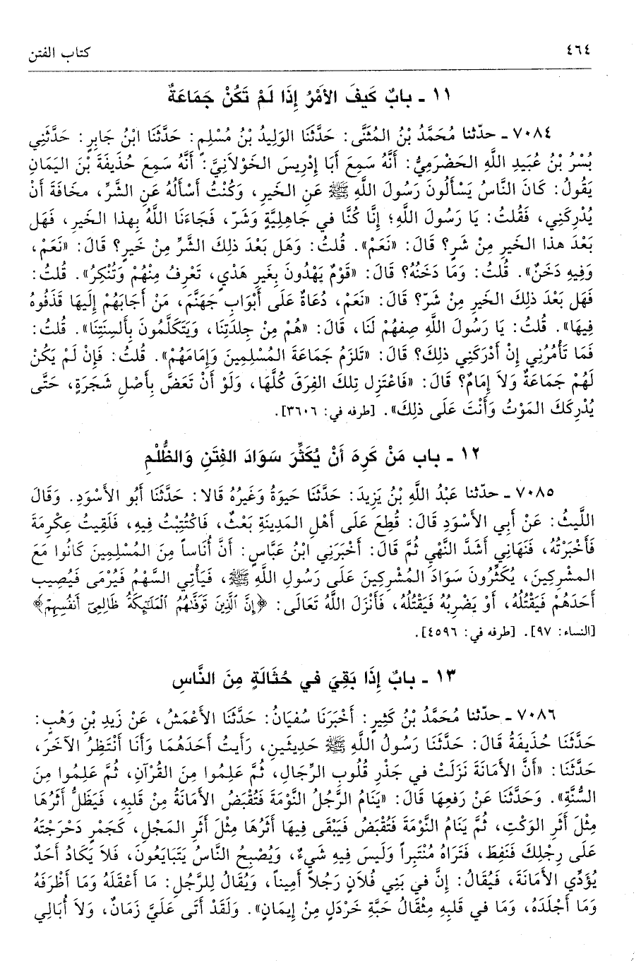 11 - باب كَيْفَ الأَمْرُ إِذَا لَمْ تَكُنْ جَمَاعَةٌ