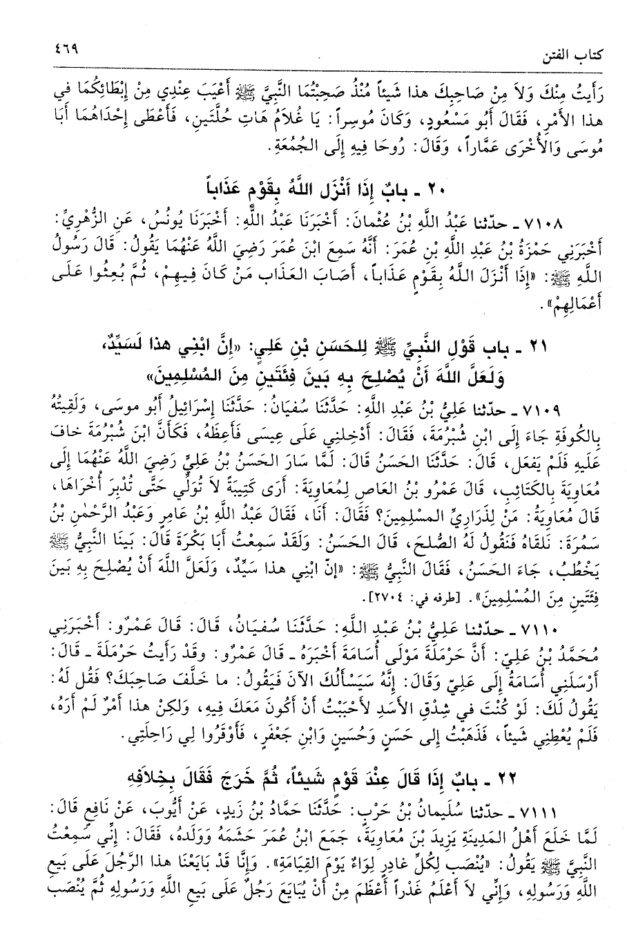 21 - باب قَوْلِ النَّبِىِّ - صلى الله عليه وسلم - لِلْحَسَنِ بْنِ عَلِىٍّ: «إِنَّ ابْنِى هَذَا لَسَيِّدٌ، وَلَعَلَّ اللَّهَ أَنْ يُصْلِحَ بِهِ بَيْنَ فِئَتَيْنِ مِنَ الْمُسْلِمِينَ»