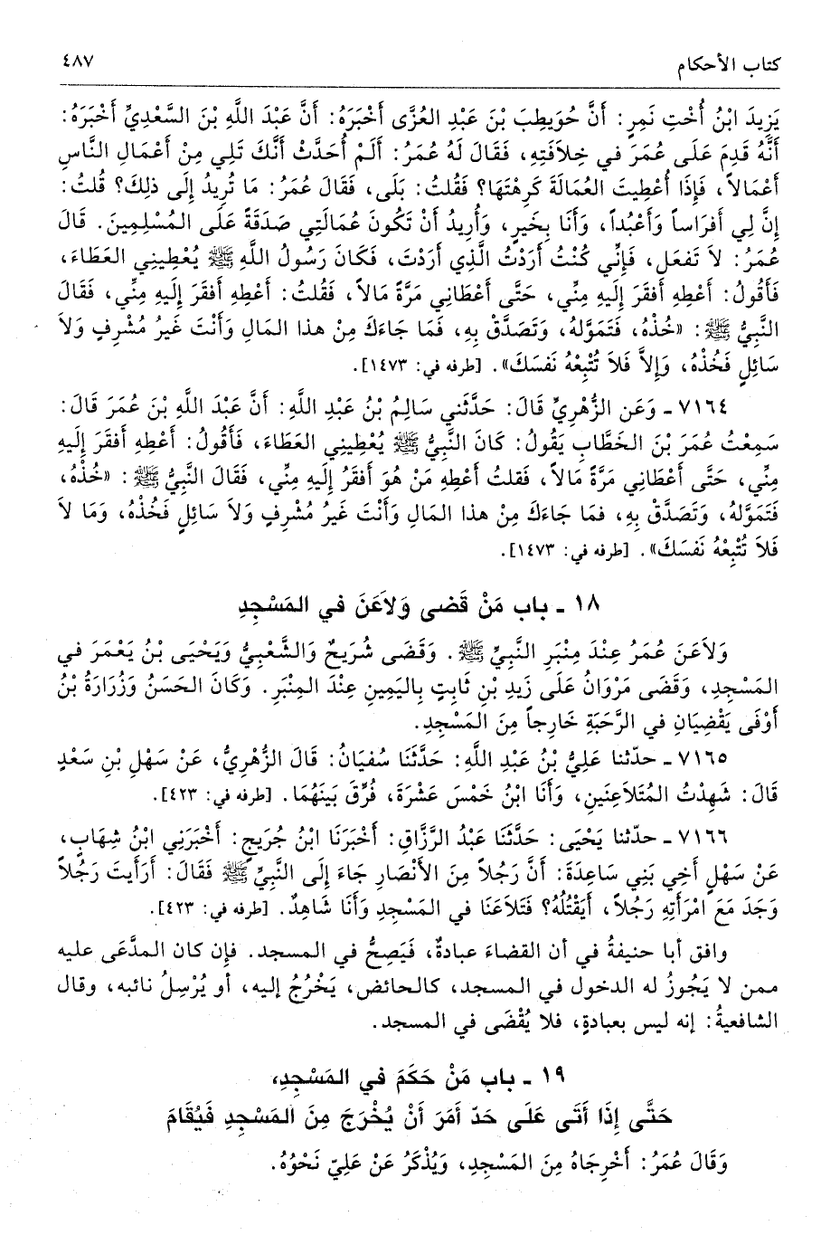 18 - باب مَنْ قَضَى وَلاَعَنَ فِى الْمَسْجِدِ