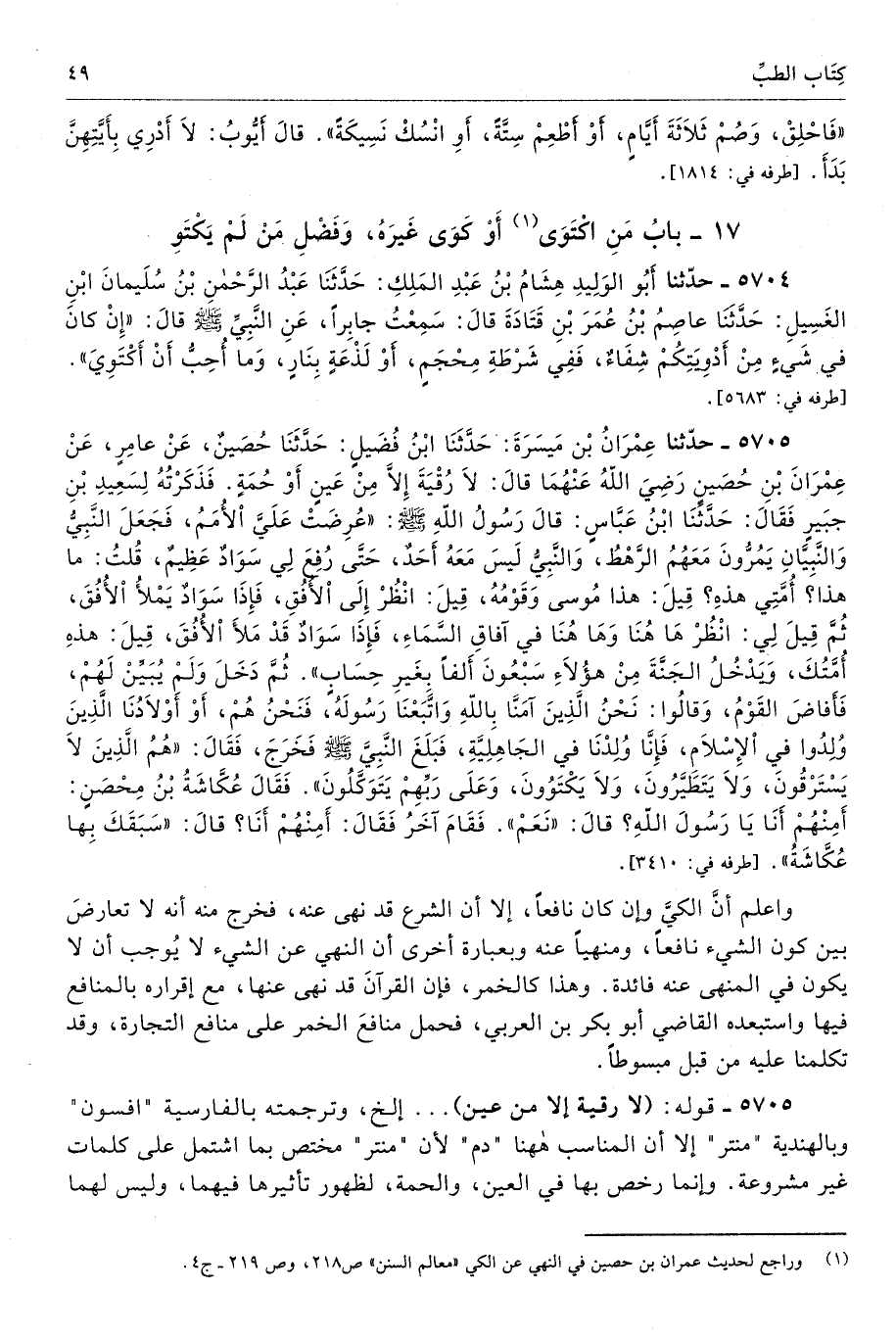 (¬1) وراجع لحديث عمران بن حصين في النهي عن الكي "معالم السنن" ص 218، وص 219 - ج 4.