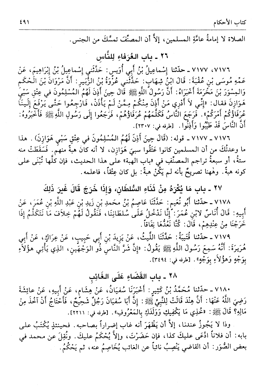 28 - باب الْقَضَاءِ عَلَى الْغَائِبِ