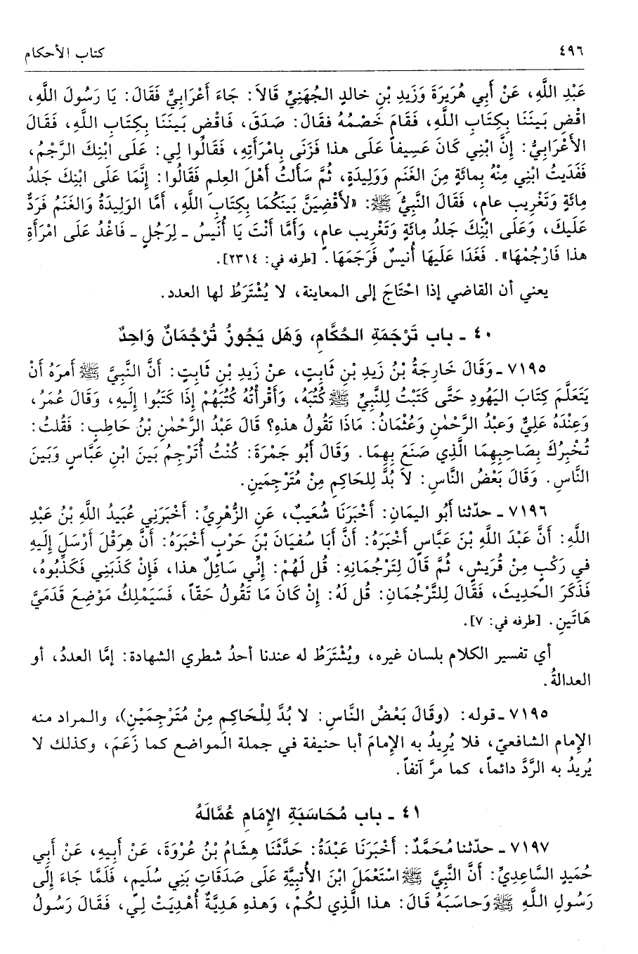 40 - باب تَرْجَمَةِ الْحُكَّامِ، وَهَلْ يَجُوزُ تُرْجُمَانٌ وَاحِدٌ