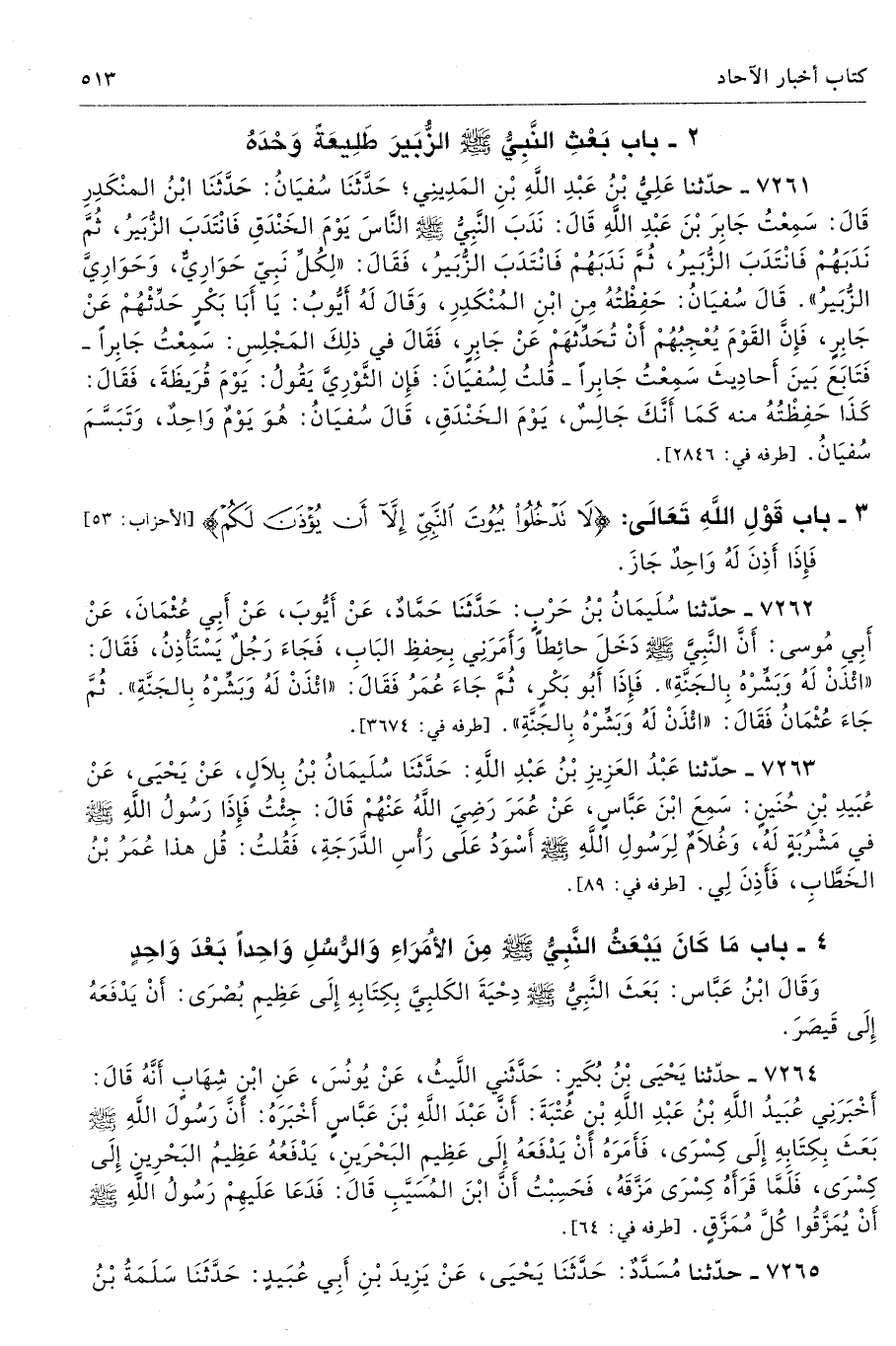 4 - باب مَا كَانَ يَبْعَثُ النَّبِىُّ - صلى الله عليه وسلم - مِنَ الأُمَرَاءِ وَالرُّسُلِ وَاحِدًا بَعْدَ وَاحِدٍ