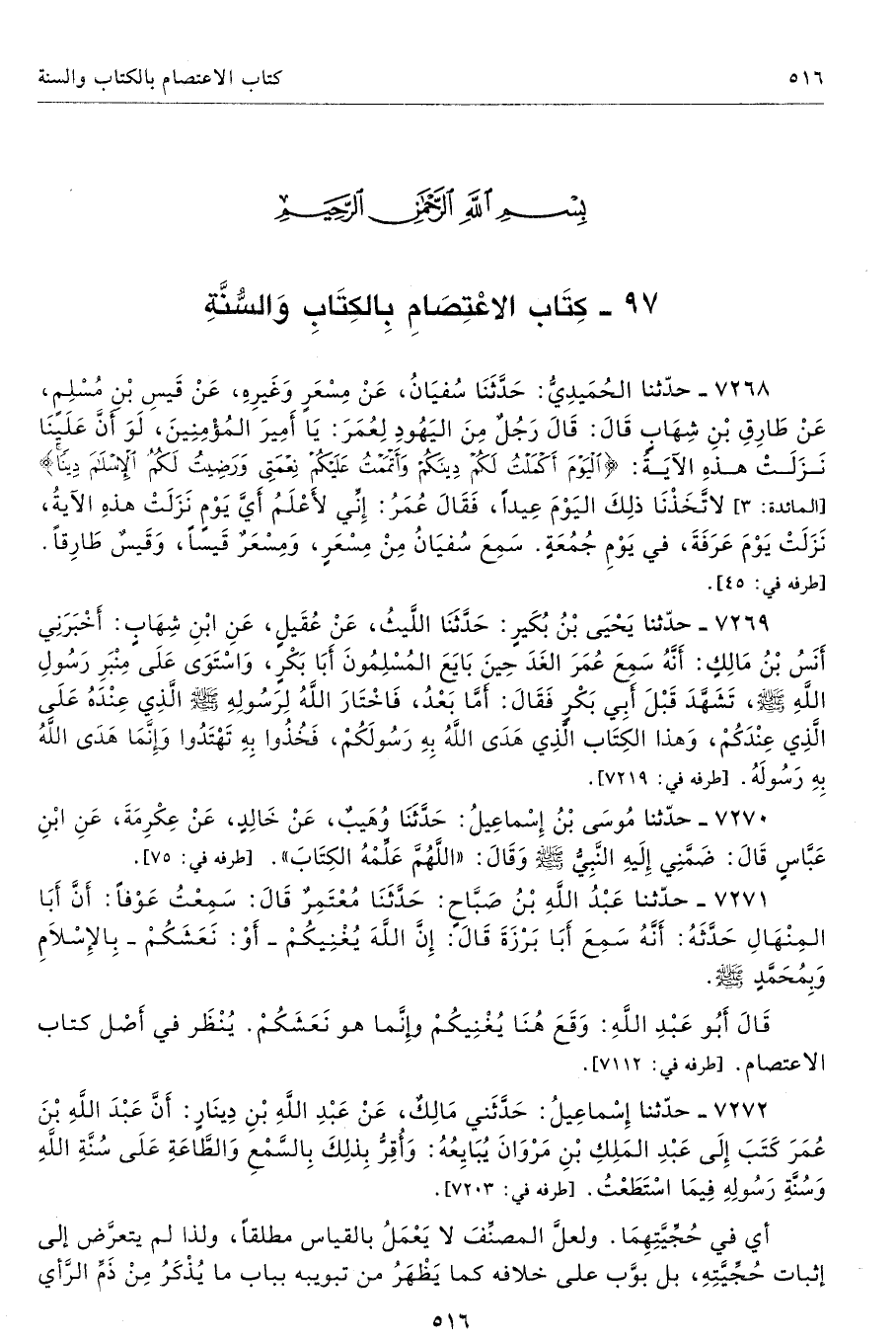 97 - كتاب الاعْتِصَامِ بِالكِتَابِ وَالسُّنَّة