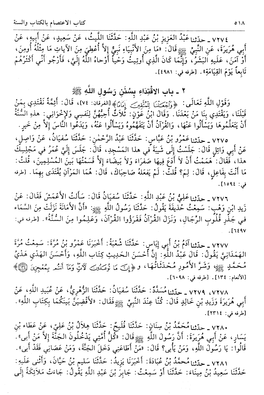 7278 و 7279 - حَدَّثَنَا مُسَدَّدٌ حَدَّثَنَا سُفْيَانُ حَدَّثَنَا الزُّهْرِىُّ عَنْ عُبَيْدِ اللَّهِ عَنْ أَبِى هُرَيْرَةَ وَزَيْدِ بْنِ خَالِدٍ قَالاَ كُنَّا عِنْدَ النَّبِىِّ - صلى الله عليه وسلم - فَقَالَ «لأَقْضِيَنَّ بَيْنَكُمَا بِكِتَابِ اللَّهِ». حديث 7278 أطرافه 2315، 2695، 2724، 6633، 6827، 6833، 6835، 6842، 6859، 7193، 7258، 7260 - تحفة 14106 حديث 7279 أطرافه 2314، 2649، 2696، 2725، 6634، 6828، 6831، 6836، 6843، 6860، 7194، 7259 - تحفة 3755