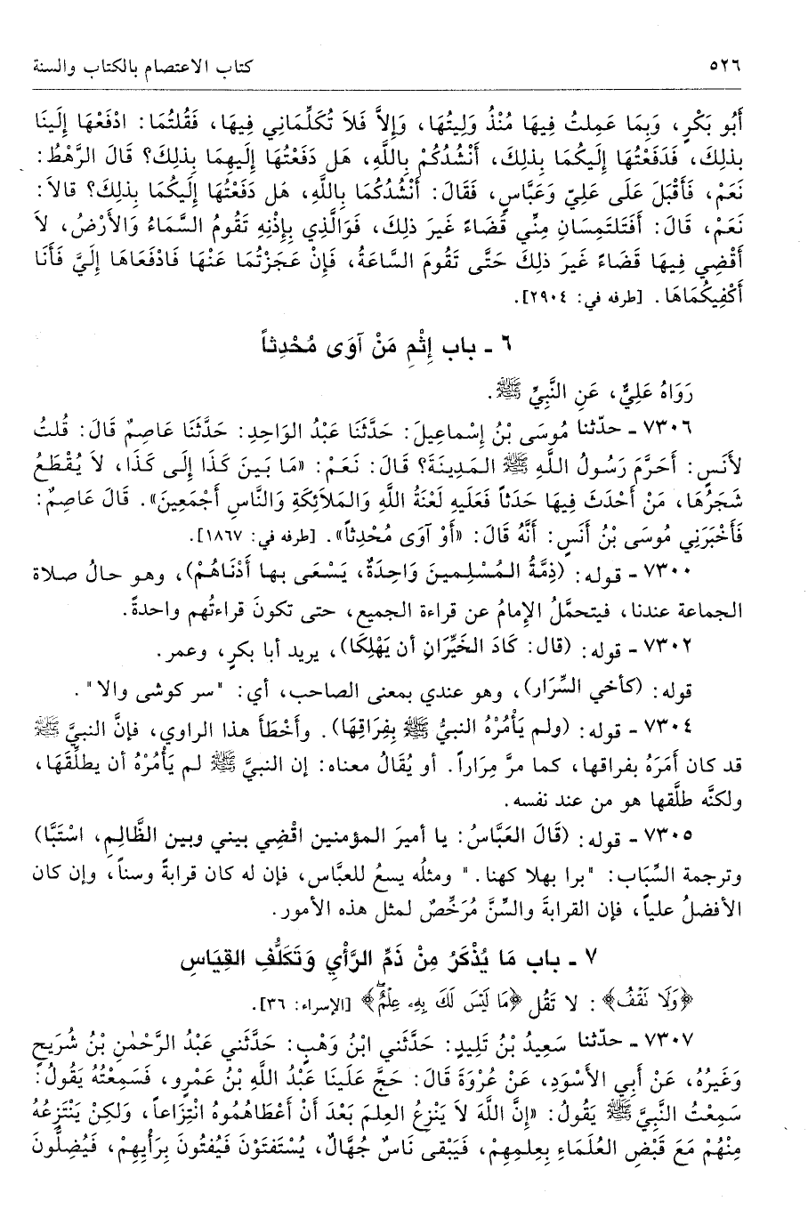 7306 - حَدَّثَنَا مُوسَى بْنُ إِسْمَاعِيلَ حَدَّثَنَا عَبْدُ الْوَاحِدِ حَدَّثَنَا عَاصِمٌ قَالَ قُلْتُ لأَنَسٍ أَحَرَّمَ رَسُولُ اللَّهِ - صلى الله عليه وسلم - الْمَدِينَةَ. قَالَ نَعَمْ مَا بَيْنَ كَذَا إِلَى كَذَا، لاَ يُقْطَعُ شَجَرُهَا، مَنْ أَحْدَثَ فِيهَا حَدَثًا فَعَلَيْهِ لَعْنَةُ اللَّهِ وَالْمَلاَئِكَةِ وَالنَّاسِ أَجْمَعِينَ. قَالَ عَاصِمٌ فَأَخْبَرَنِى مُوسَى بْنُ أَنَسٍ أَنَّهُ قَالَ أَوْ آوَى مُحْدِثًا. طرفه 1867 - تحفة 932، 1613 أ
