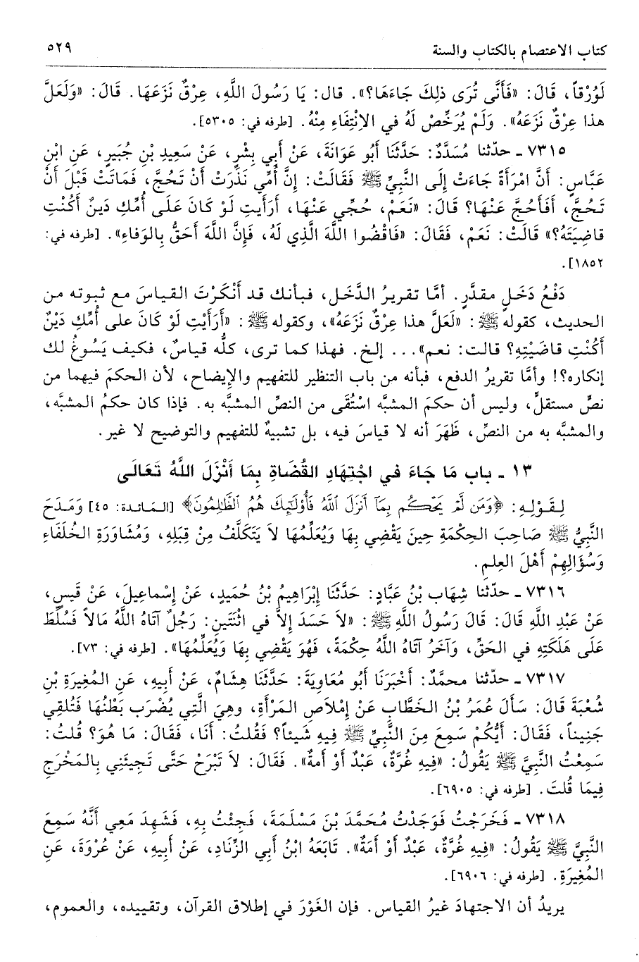 لِقَوْلِهِ: {وَمَنْ لَمْ يَحْكُمْ بِمَا أَنْزَلَ اللَّهُ فَأُولَئِكَ هُمُ الظَّالِمُونَ} [المائدة: 45] وَمَدَحَ النَّبِىُّ - صلى الله عليه وسلم - صَاحِبَ الْحِكْمَةِ حِينَ يَقْضِى بِهَا وَيُعَلِّمُهَا لاَ يَتَكَلَّفُ مِنْ قِبَلِهِ، وَمُشَاوَرَةِ الْخُلَفَاءِ وَسُؤَالِهِمْ أَهْلَ الْعِلْمِ.