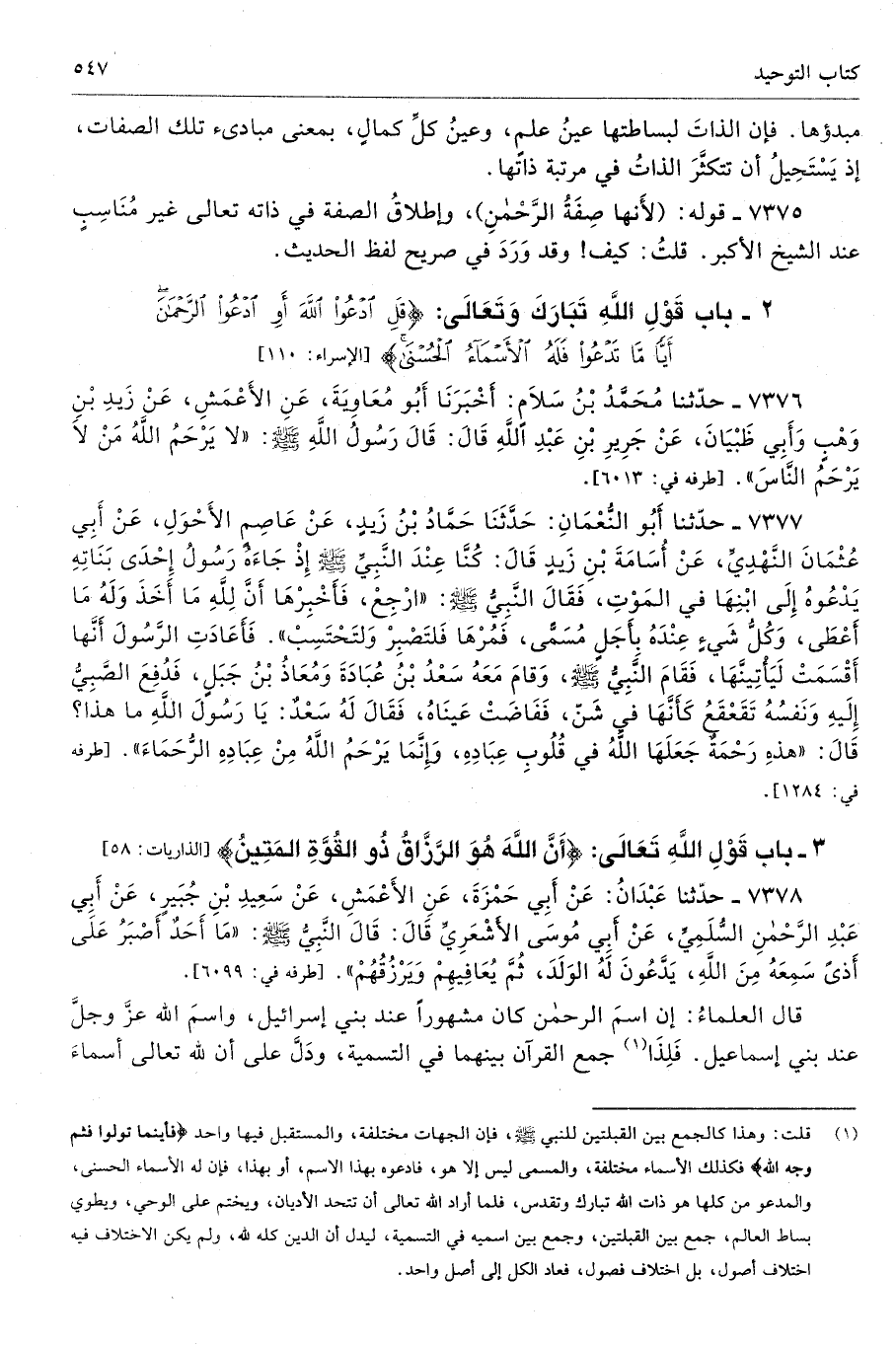 3 - باب قَوْلِ اللَّهِ تَعَالَى: {إِنَّ اللَّهَ هُوَ الرَّزَّاقُ ذُو الْقُوَّةِ الْمَتِينُ} [الذاريات: 58]