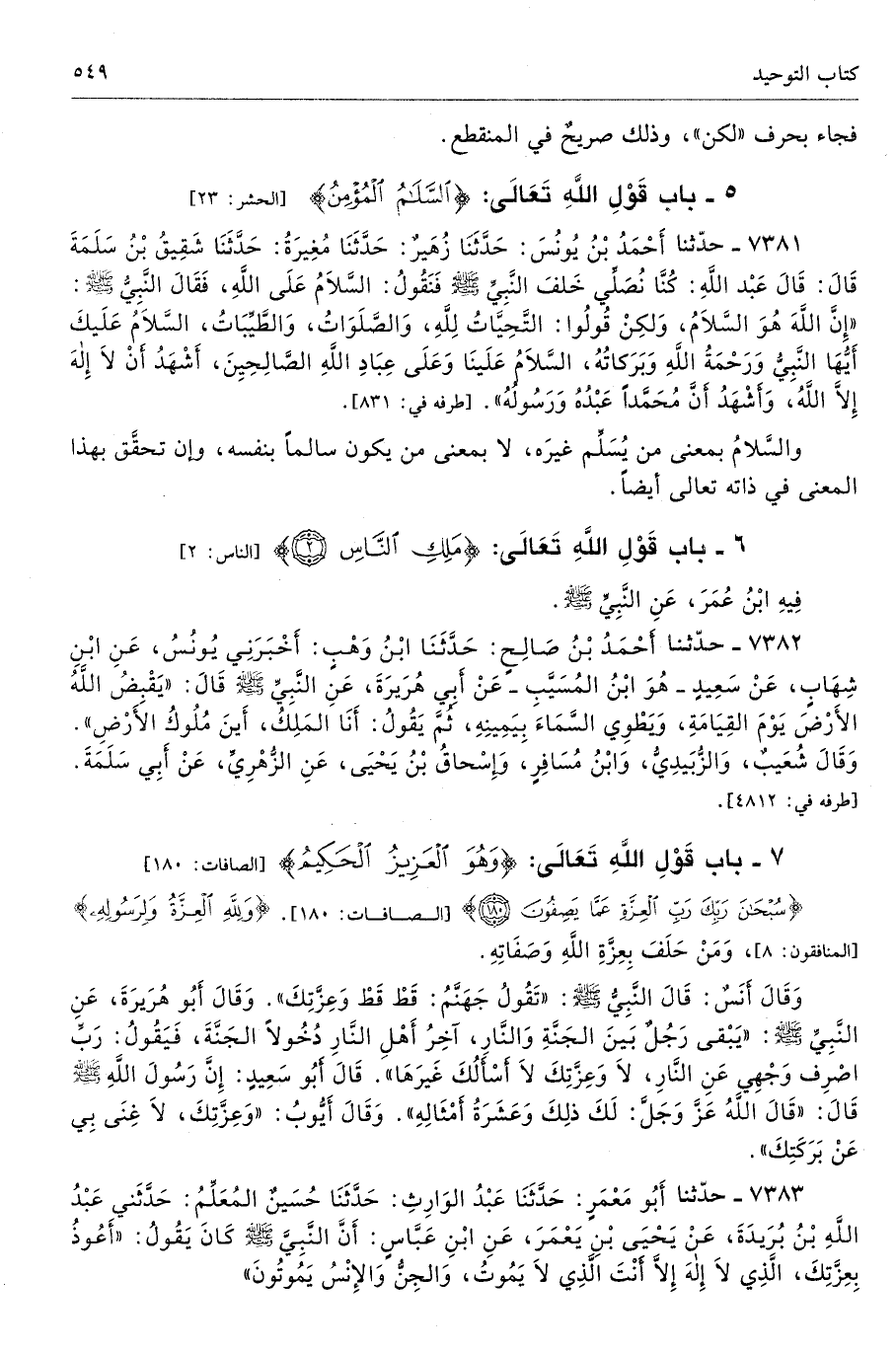 5 - باب قَوْلِ اللَّهِ تَعَالَى: {السَّلَامُ الْمُؤْمِنُ} [الحشر: 23]