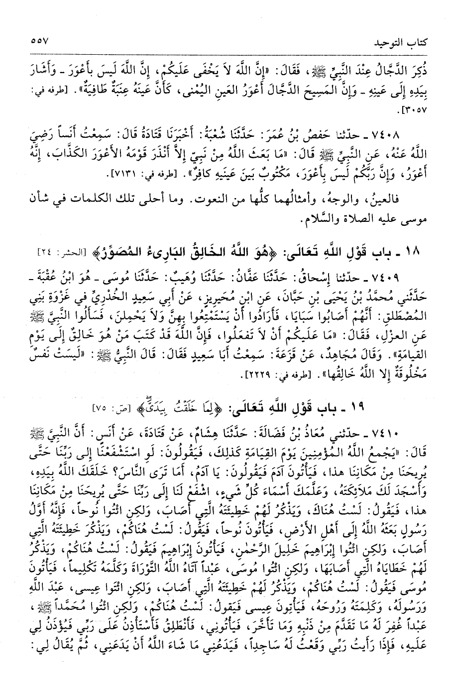 19 - باب قَوْلِ اللَّهِ تَعَالَى: {لِمَا خَلَقْتُ بِيَدَيَّ} [ص: 75]