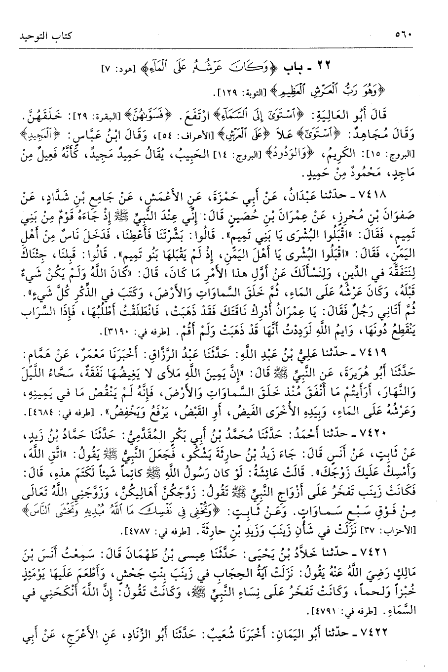 22 - باب {وَكَانَ عَرْشُهُ عَلَى الْمَاءِ} [هود: 7]