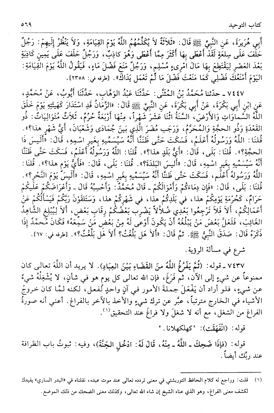 (¬1) قلت: وراجع له كلام الحافظ التوربشتي في معنى تردده تعالى عند موت عبده، نقلناه في "البدر الساري" يفيدك لكشف معنى الفراغ، وهو الذي عناه الشيخ إن شاء الله تعالى، وكذلك معنى الضحك من ذلك الموضع.