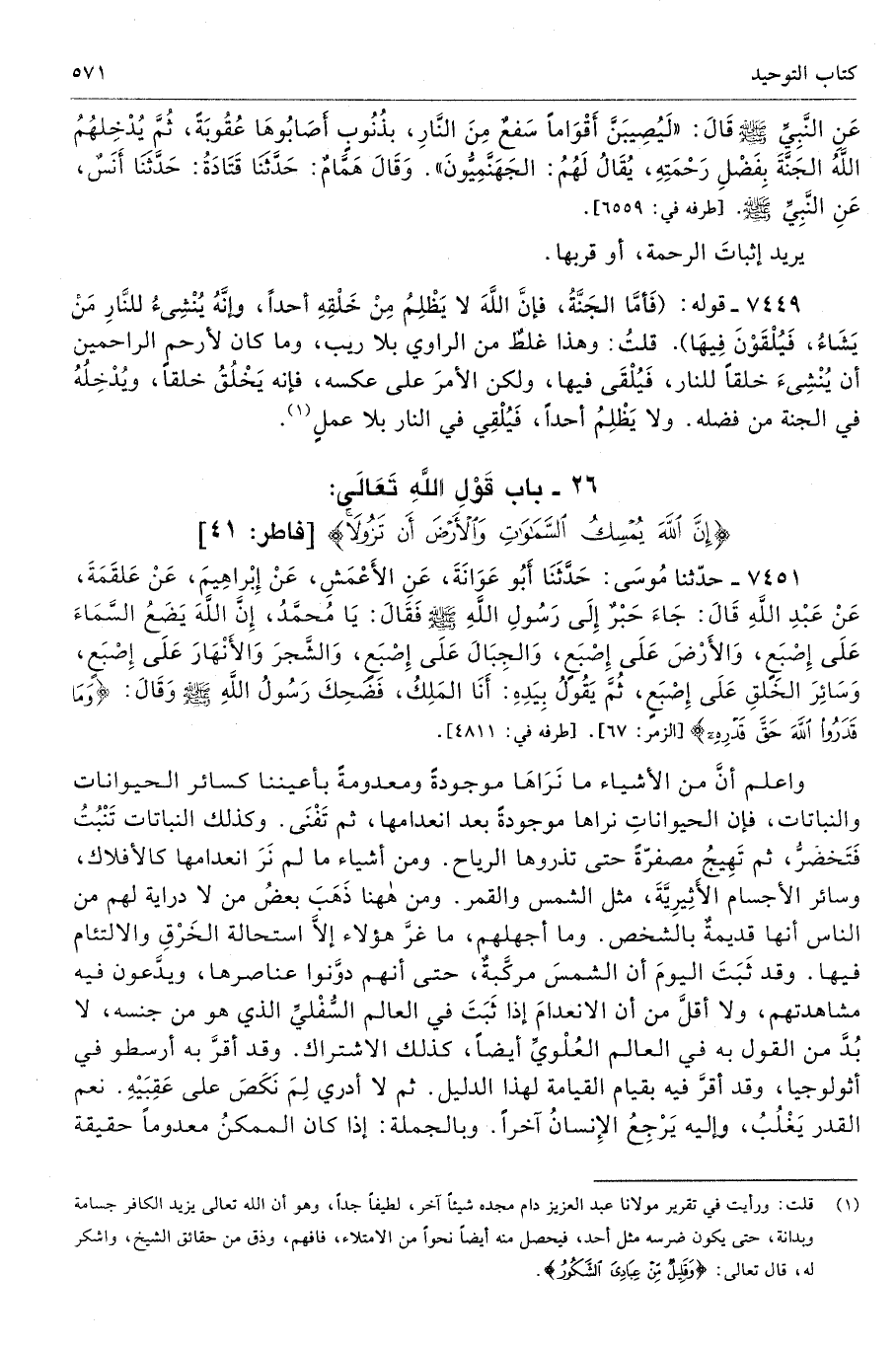 26 - باب قَوْلِ اللَّهِ تَعَالَى: {إِنَّ اللَّهَ يُمْسِكُ السَّمَاوَاتِ وَالْأَرْضَ أَنْ تَزُولَا} [فاطر: 41]