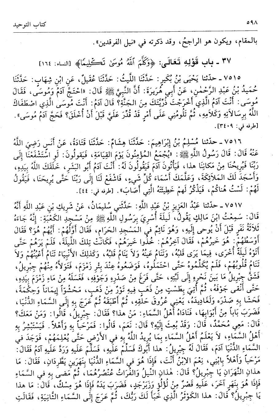 37 - باب قَوْلِهِ تَعَالَى: {وَكَلَّمَ اللَّهُ مُوسَى تَكْلِيمًا} [النساء: 164]