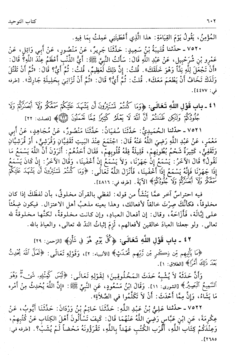 42 - باب قَوْلِ اللَّهِ تَعَالَى: {كُلَّ يَوْمٍ هُوَ فِي شَأْنٍ} [الرحمن: 29]