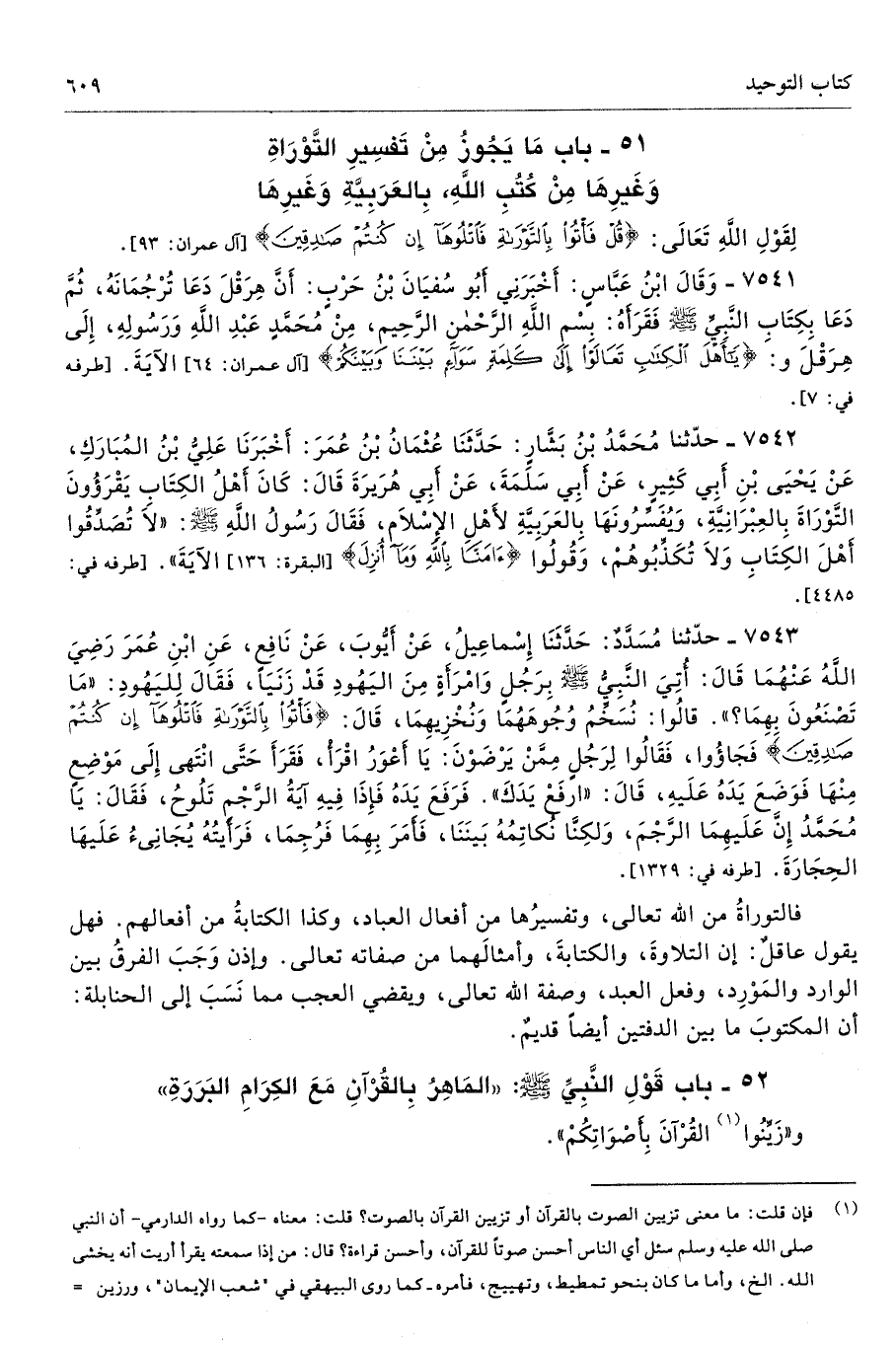 51 - باب مَا يَجُوزُ مِنْ تَفْسِيرِ التَّوْرَاةِ وَغَيْرِهَا مِنْ كُتُبِ اللَّهِ، بِالْعَرَبِيَّةِ وَغَيْرِهَا