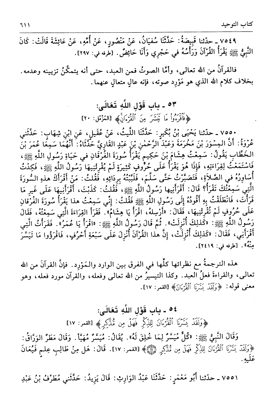 53 - باب قَوْلِ اللَّهِ تَعَالَى: {فَاقْرَءُوا مَا تَيَسَّرَ مِنَ الْقُرْآنِ} [المزمل: 20]