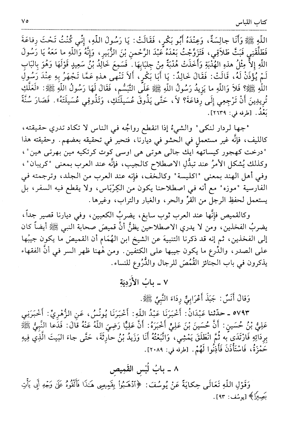 7 - باب الأَرْدِيَةِ