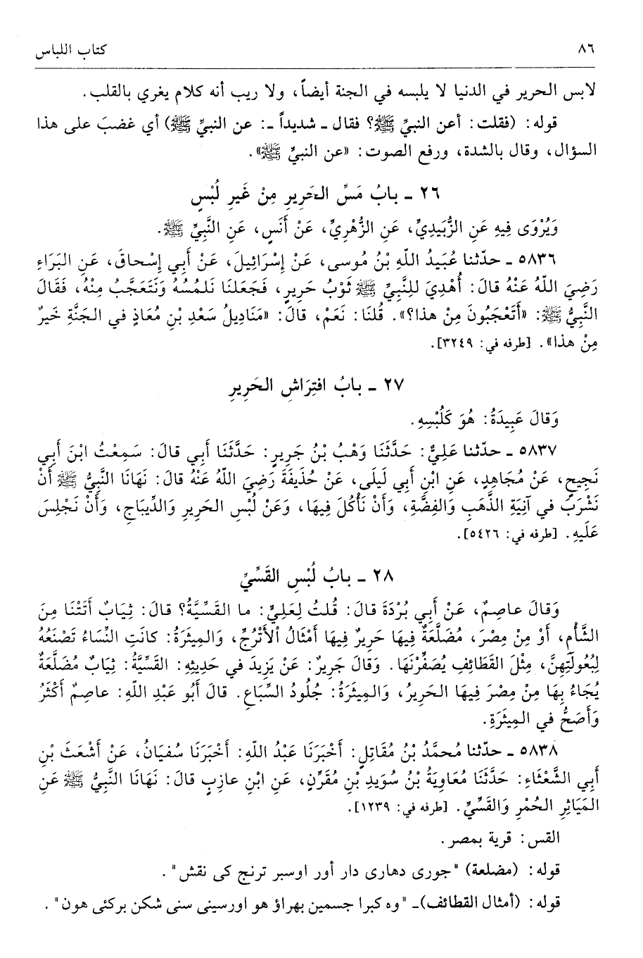 26 - باب مَسِّ الْحَرِيرِ مِنْ غَيْرِ لُبْسٍ