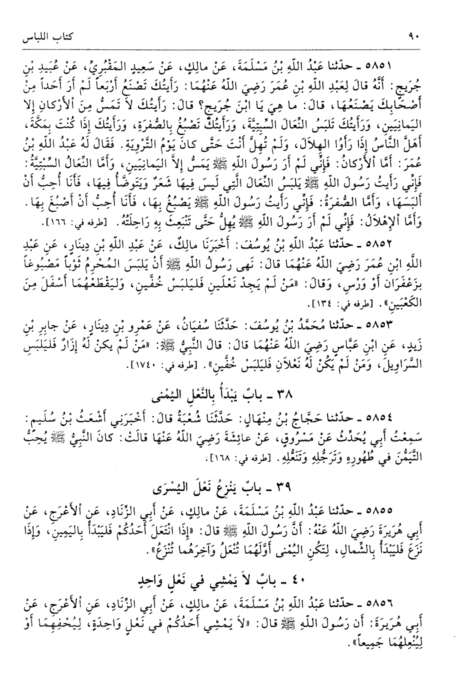 40 - باب لاَ يَمْشِي فِى نَعْلٍ وَاحِدٍ