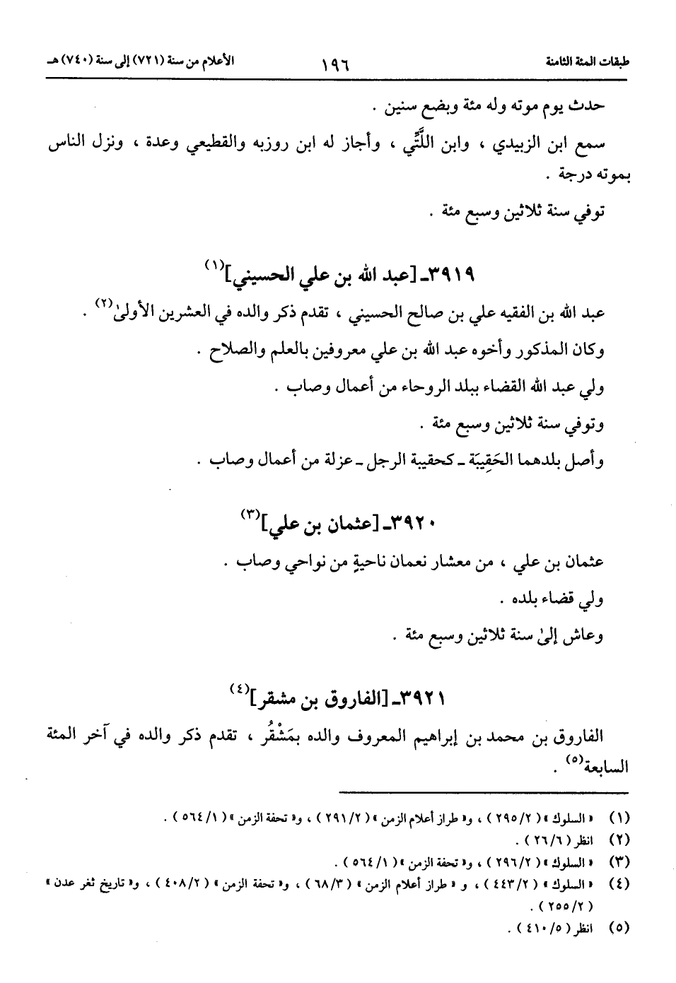 (4) «السلوك» (2/ 443)، و «طراز أعلام الزمن» (3/ 68)، و «تحفة الزمن» (2/ 408)، و «تاريخ ثغر عدن» (2/ 255).
