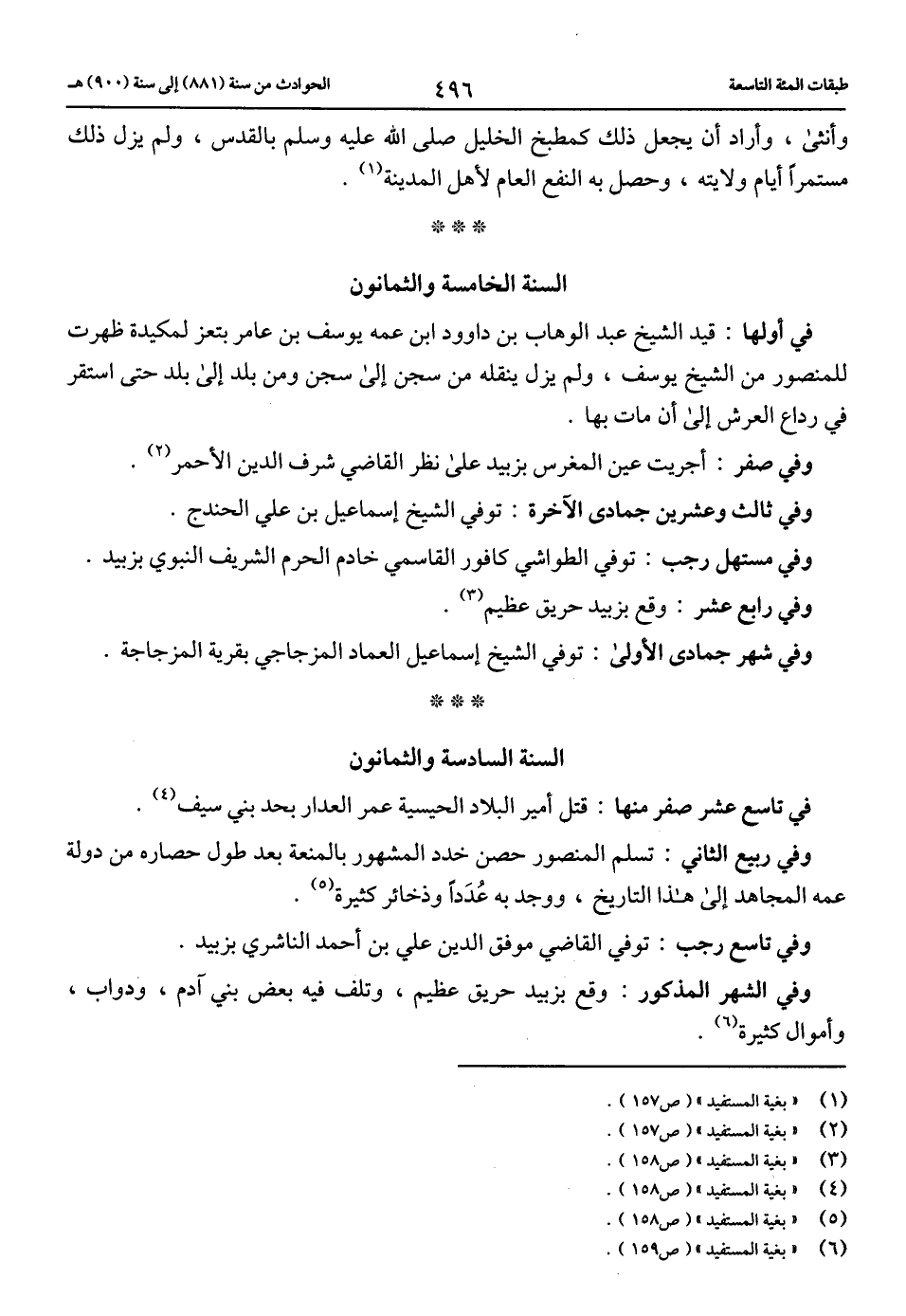 في أولها: قيد الشيخ عبد الوهاب بن داود ابن عمه يوسف بن عامر بتعز لمكيدة ظهرت للمنصور من الشيخ يوسف، ولم يزل ينقله من سجن إلى سجن ومن بلد إلى بلد حتى استقر في رداع العرش إلى أن مات بها.