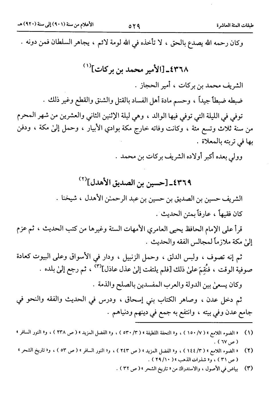(2) «الضوء اللامع» (3/ 144)، و «الفضل المزيد» (ص 243)، و «النور السافر» (ص 53)، و «تاريخ الشحر» (ص 31)، و «شذرات الذهب» (10/ 29).